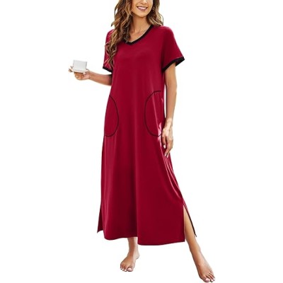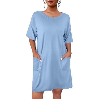 Sleep Shirts for Women Nightgown Short Sleeves T shirt Night Dress Round Neck Womans Nightgown with Pocket
