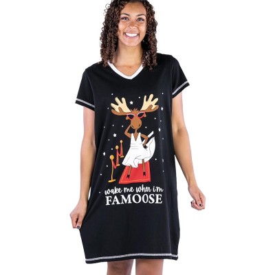 Women's Nightgown, Funny V-Neck Sleep Shirt for Women, Bear & Moose Pajama Shirts
