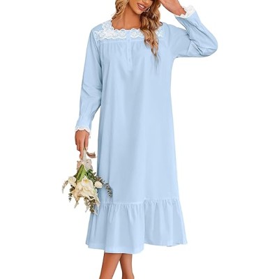 Victorian Nightgown 100% Cotton Long Sleeve Vintage Old Fashioned Gown for Women