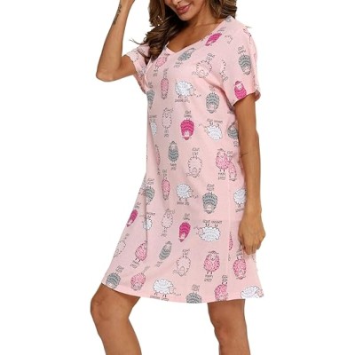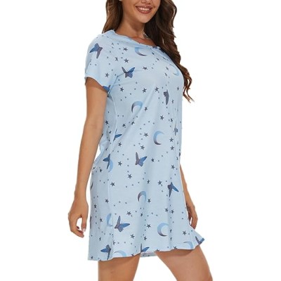 Womens Nightgowns Short Sleeve Printed Nightshirts Casual Sleepwear Soft Sleepdress