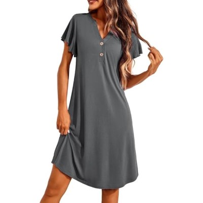 Women's Nightgown Short Flare Sleeve Sleepshirt V-Neck Sleepwear Soft Nightshirt Pajama Dress