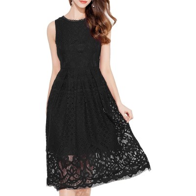 Womens Fashion Sleeveless Lace Fit Elegant Cocktail Party Dress