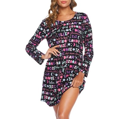Women's Cotton Sleepwear Long Sleeves Nightgown Print Tee Sleep Dress