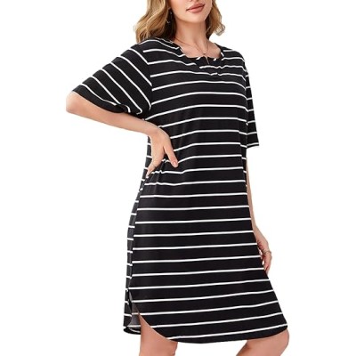 Womens Nightgowns Short Sleeve Printed Nightshirts Casual Sleepwear Soft Sleepdress