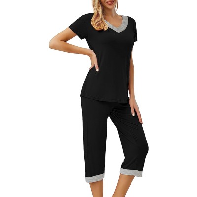 Women’s Pajama Set Sleepwear Short Sleeve Tops with Capri Pants Lounge Set