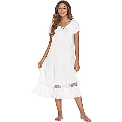 Women's Lace Nightdress Short Sleeve Victorian Nightgown Sleepwear Pajama