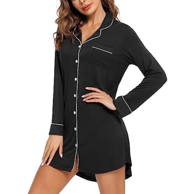 Pajama Nightgown for Women Short/Long Sleeve Button Down Nightwear Top Boyfriend Sleep Shirts Nightdress