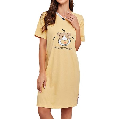 Women's Sleepwear Loose Nightgown Comfy Pajama Novelty Sleepshirts Short Sleeve Nightdress