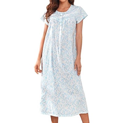 Women Nightgowns, Soft Comfy Lightweight 100% Cotton Short Sleeves Comfy Ladies Nightdress