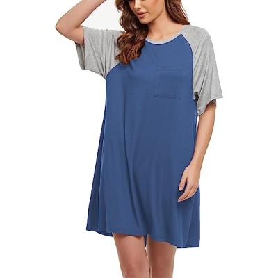 Women's Nightgown Short Sleeve Sleepwear Comfy Sleepshirts Loose Scoopneck Nightshirt S-XXL
